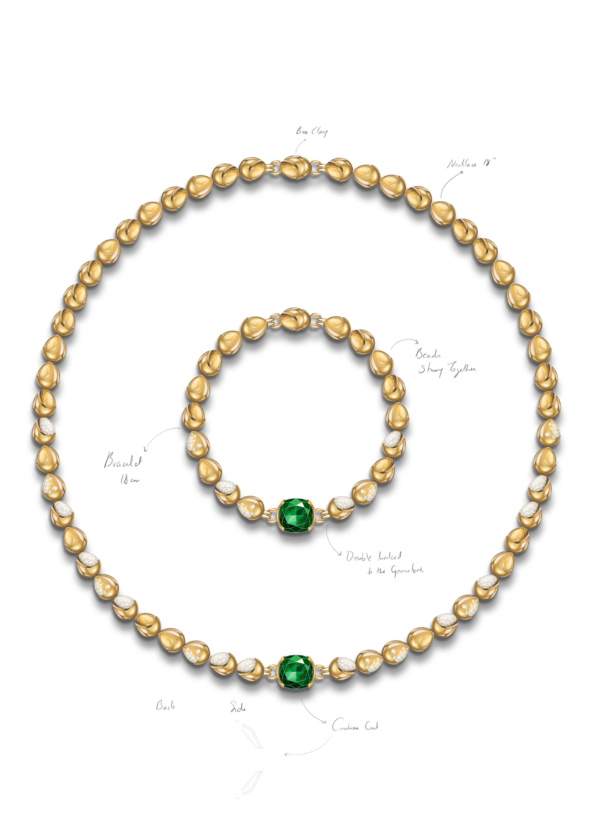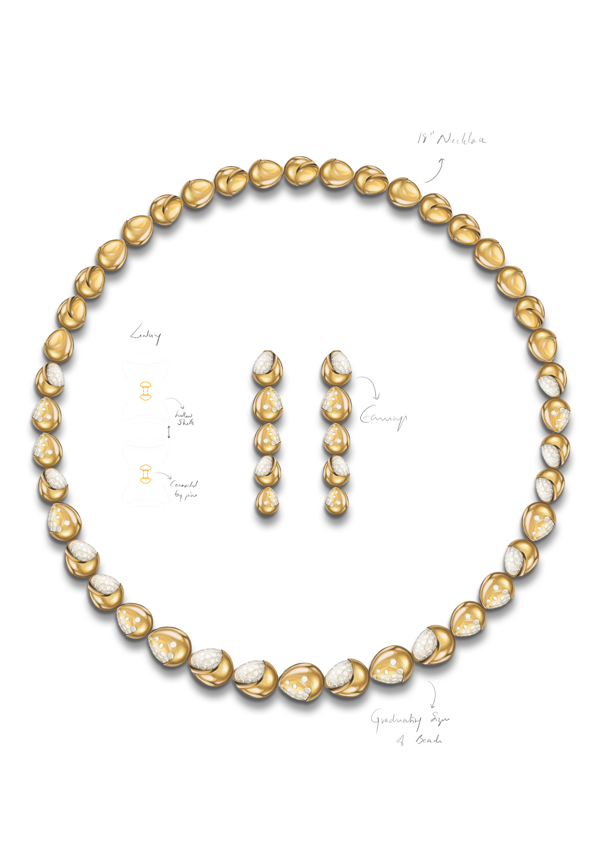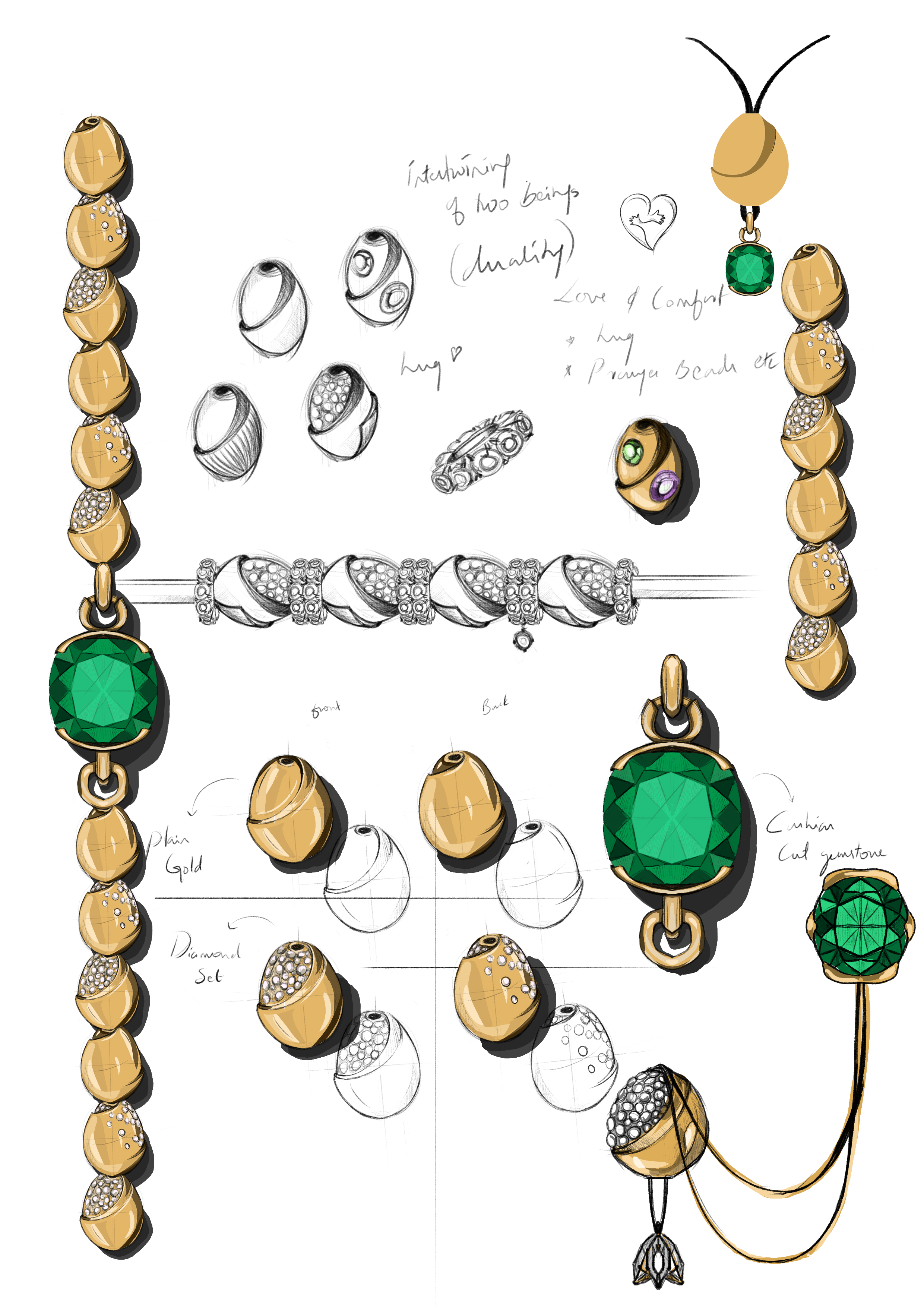 The foundation of the collection is a bead design which gives the feeling of being held. A metaphorical embrace in form and texture.